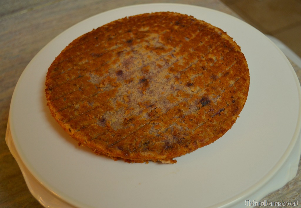 Put it in three greased 8 or 9 inch cake pans and bake for 22-25 minutes until lightly browned.  Let cool for 10 minutes in pan then cool completely on metal rack.