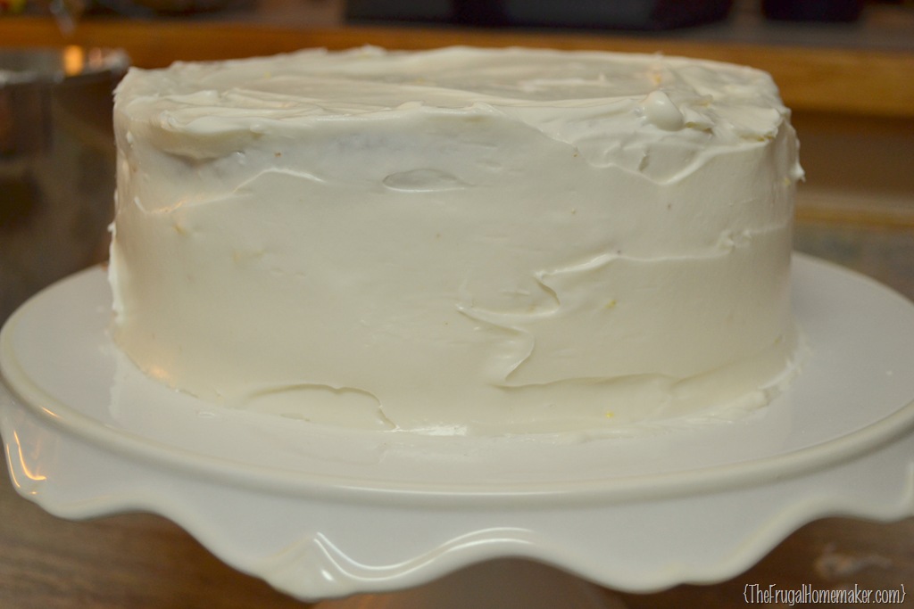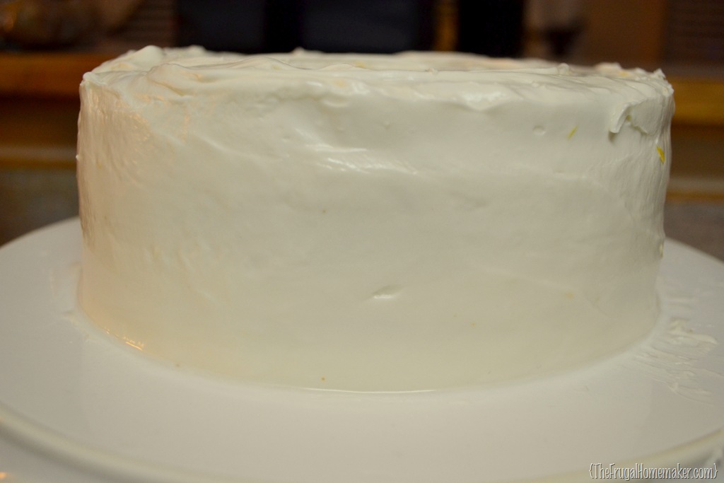 Continue until the whole cake is iced.  See even I don’t have a smooth cake at first!   But we are going to fix that.