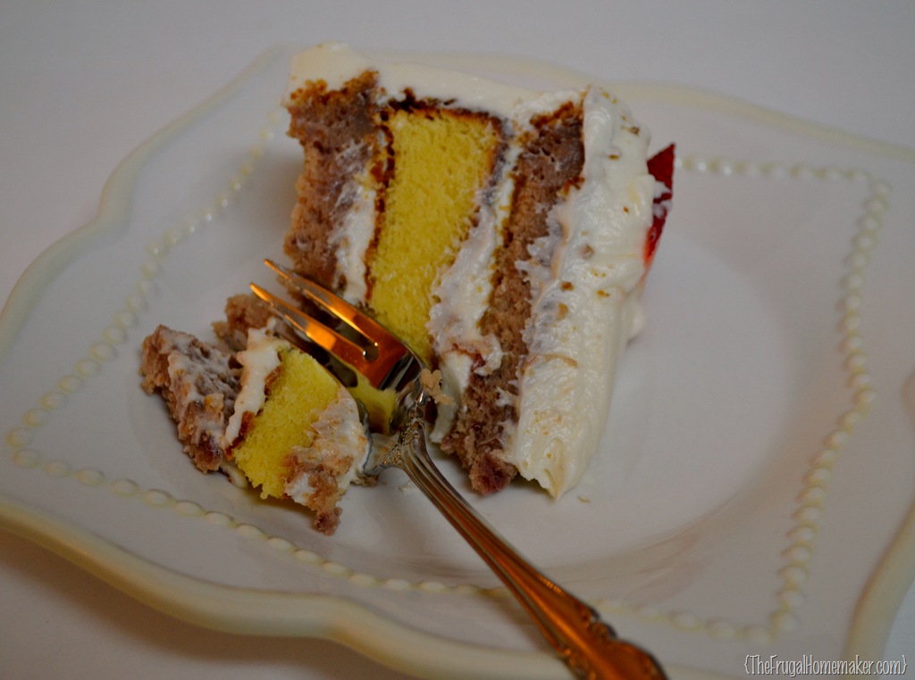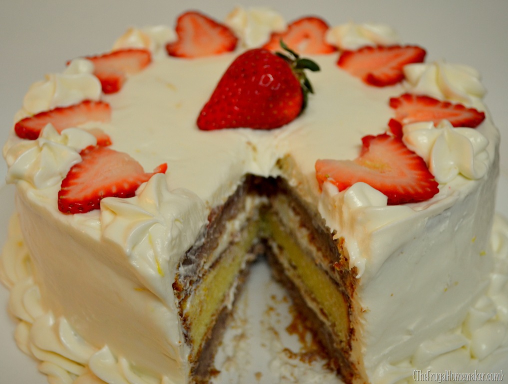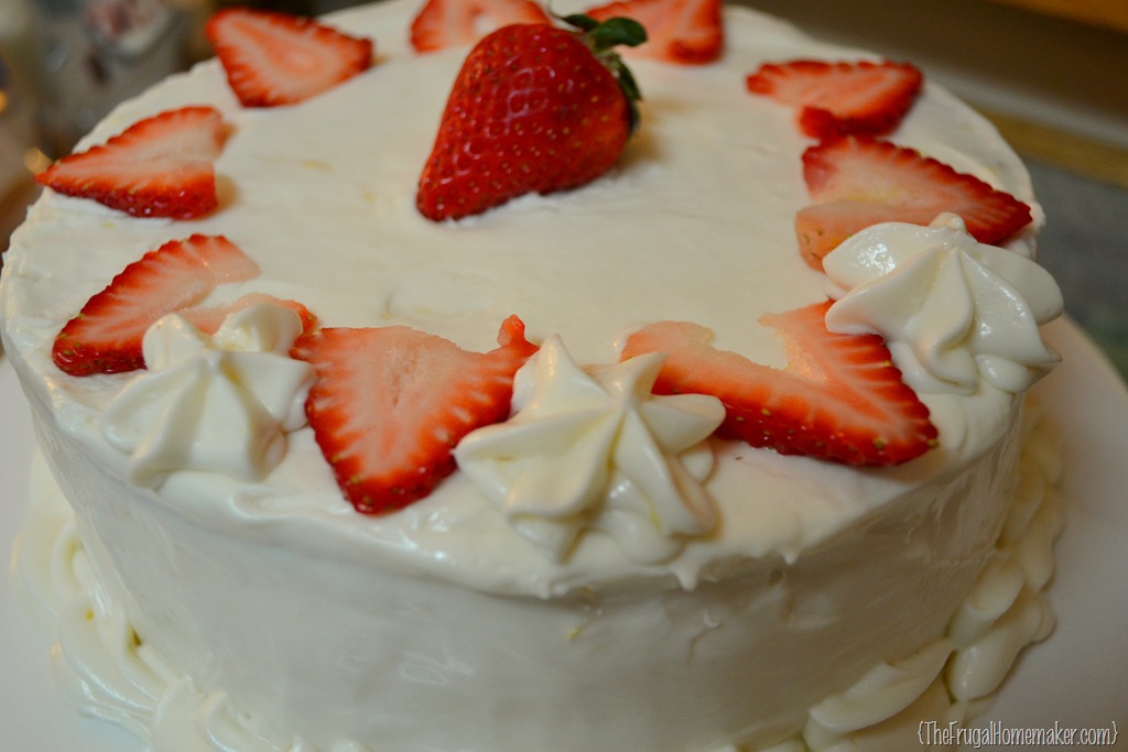 So today I am going to share a few things with you.  First up our dessert, which is going to be a Strawberry and white chocolate layered cake frosted with a hint of lemon cream cheese icing. 🙂DSC_0199-001