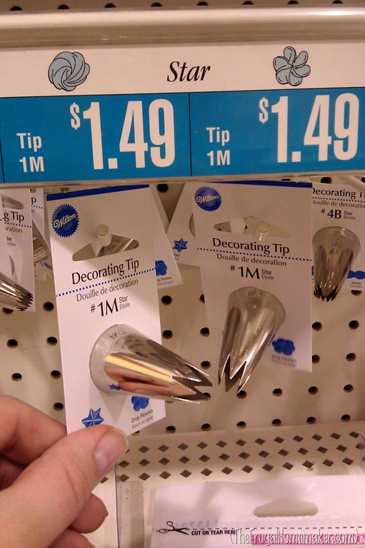 Now I want to show you a cake decorating tip that I think EVERYONE should have – it is the 1M star tip. You can use this tip for so many things (I will share in a later post how to decorate cupcakes in a breeze with this tip) and it really does make the job SIMPLE and easy! Smile  And it only costs $1.49 (this was at Michael’s but Hobby Lobby and maybe even Wal-mart should carry this tip.)