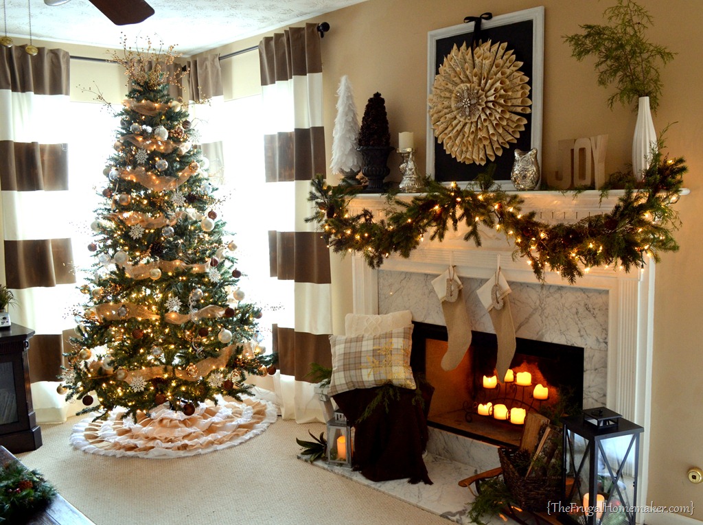 This year’s theme was to do everything in the living room, the mantel and tree, in all neutrals – cream, brown, silver, gold, white and burlap! Smile  I have enjoyed changing it up from the traditional burgundy and gold theme that I did for 8 years.   (You can see pictures of past trees in my blog header at the top of this page or  in last years Christmas tree post.)