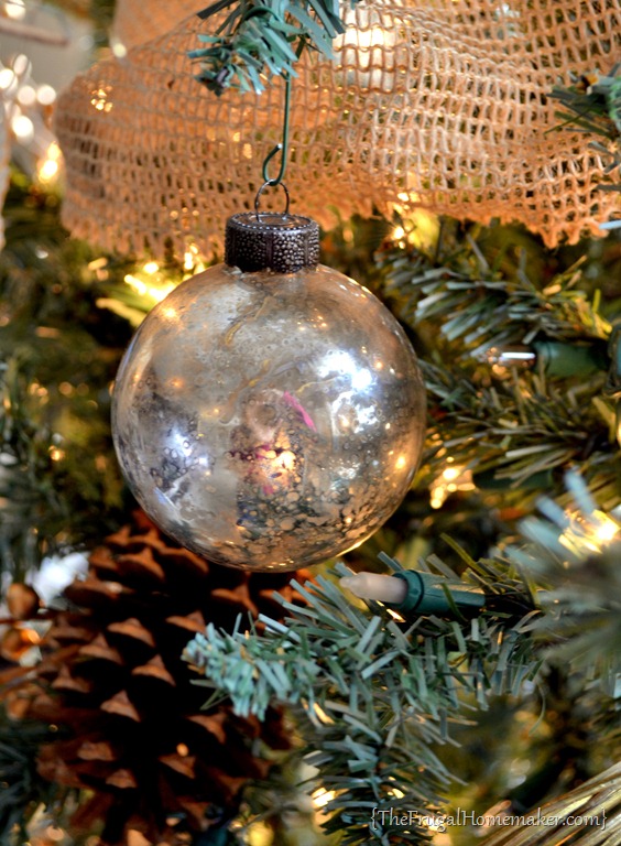 Let’s take a little tour of the ornaments shall we?  I showed you how I made my DIY mercury glass ornaments here and I love those on my tree!