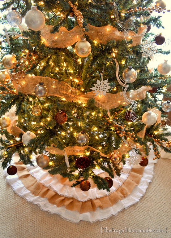 1. DIY Burlap + Lace Christmas Tree Skirt - The Frugal Homemaker | The Frugal Homemaker says: