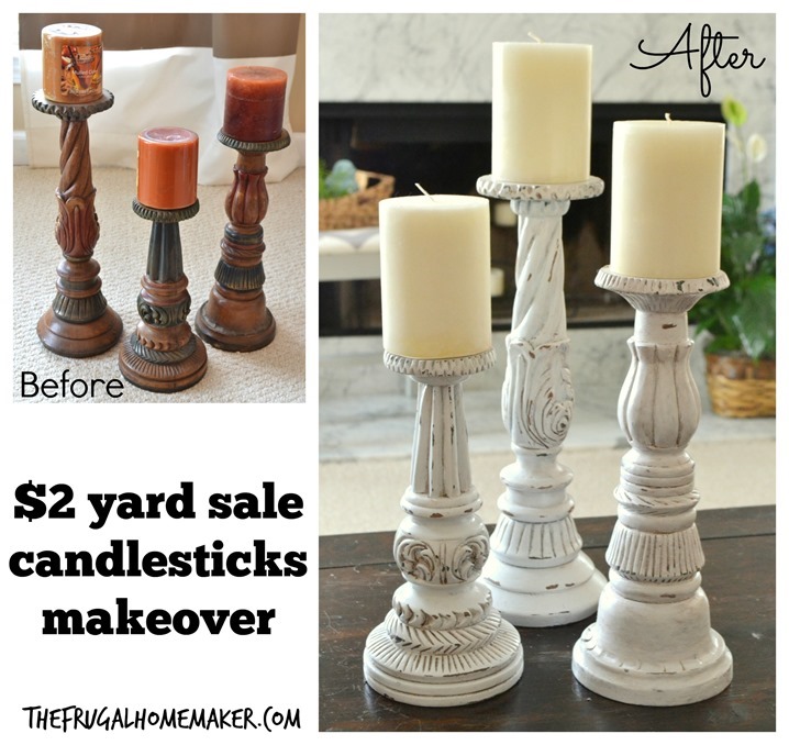 • $2.00 yard sale candlesticks makeover