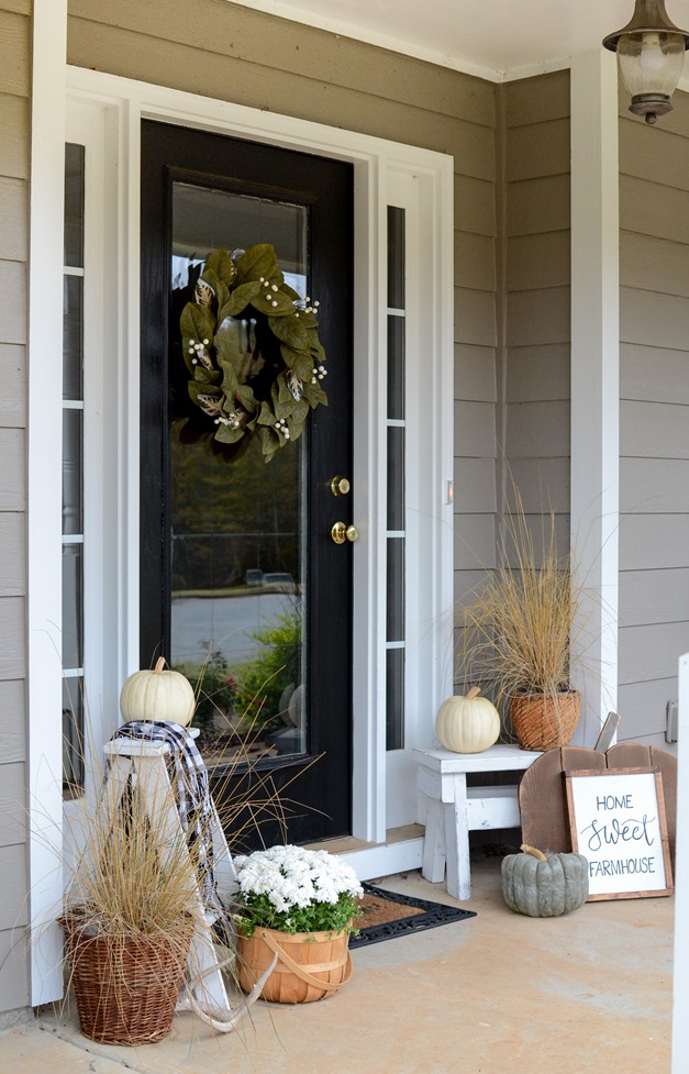 Hope you’ve enjoyed this fall tour and some of my tips on how to decorate a fall front porch on a budget! Collect things from year to year, add a few new finds, reuse your old things, and you can create a pretty display without spending a lot of money!