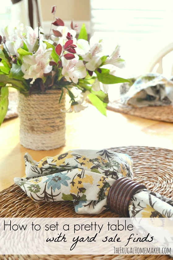 I recently found those wood side tables at a yard sale for $5 each and switched out the white garden stools I had in between the chairs. They have more room on top and I love the warmth the wood tones add.