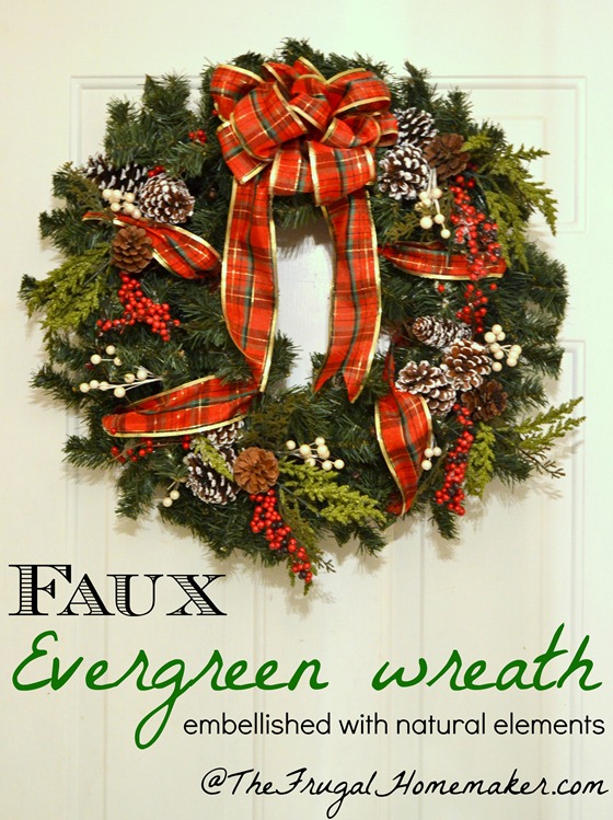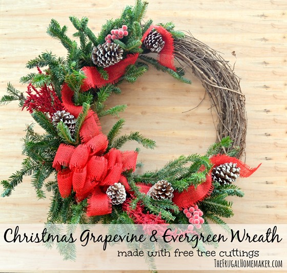 Or you could use real fresh greenery cuttings and add it to a grapevine wreath to make a wreath. You can usually get some free cuttings from wherever sells Christmas trees in your area.