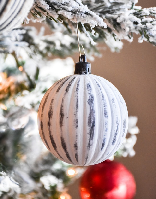 If you are wanting to change up your colors for Christmas but not buy all new ornaments – just paint them! I actually prefer the look and finish of those chalk-painted ornaments vs. the cheap look of inexpensive plastic ornaments.
