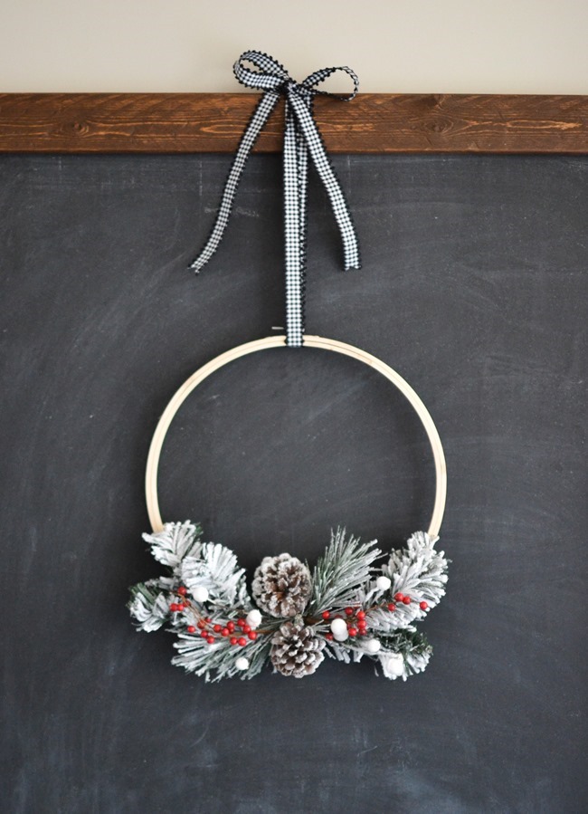A wood hoop can make a fun DIY Hoop Christmas wreath.