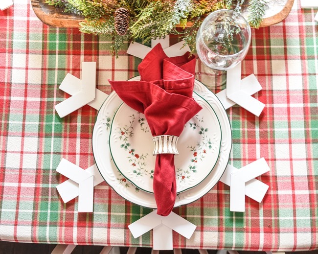 These DIY snowflake chargers could be used even into winter – again made them from large paint sticks so very inexpensive to make. Or you can use it just as decor.