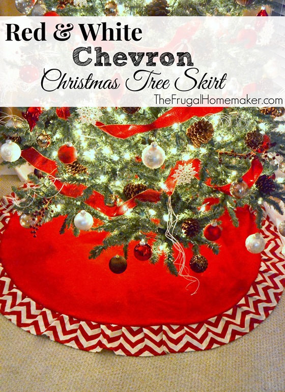 I also made this easy red + white chevron tree skirt – again you could customize to any color and design you want. But this one was quite simple to make with some very basic sewing – could even hand stitch it.