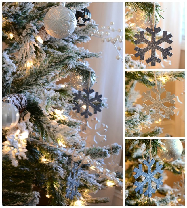 These DIY painted silver, blue, and white snowflake ornaments were a fun DIY to do too.