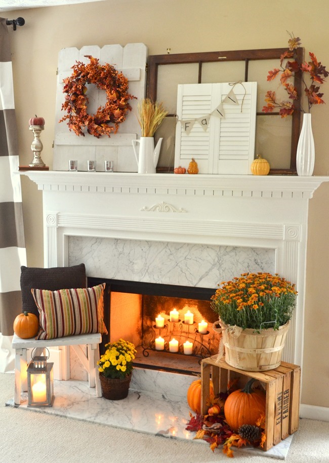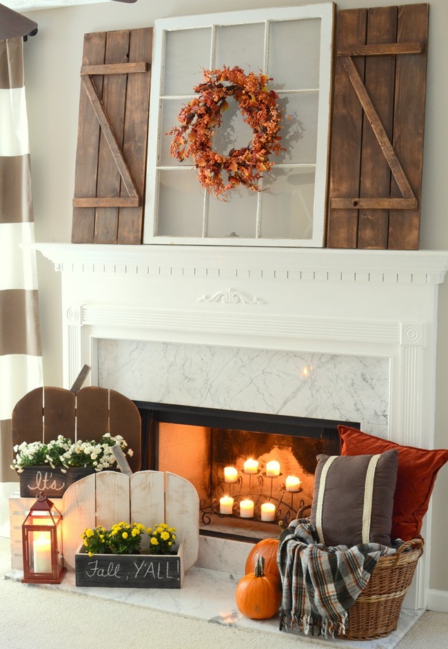 Wow so many great ideas for fall mantles I am so inspired for the fall my friend! I really love the shutters and the that pretty vintage window those are my favorites.
