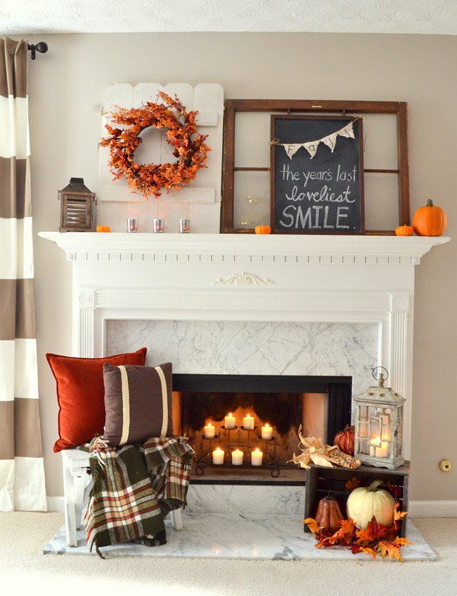 This was last years cozy fall mantel.