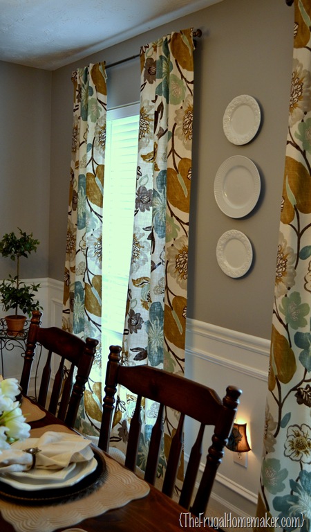 I love the white plates in between the patterned curtains.