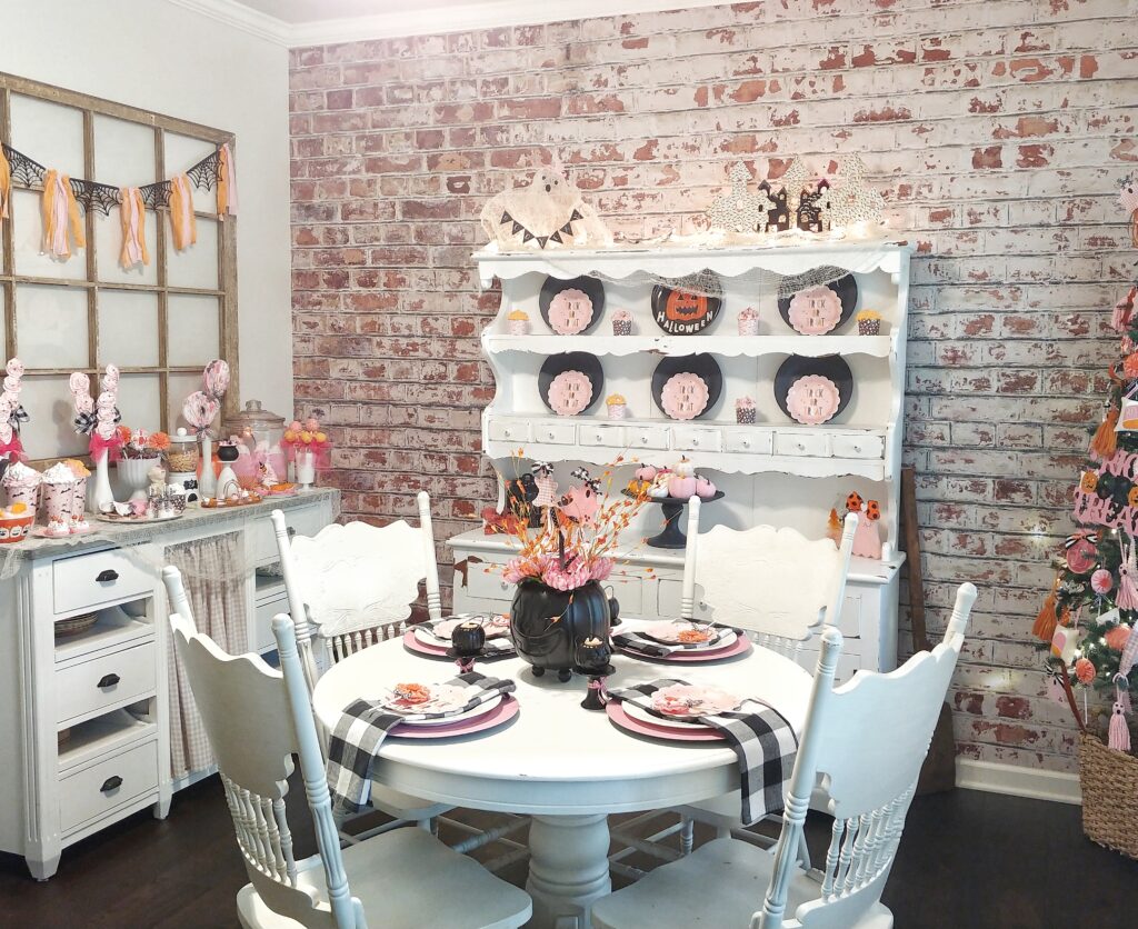 Becky at Southern Spangled is sharing a pink Halloween tablescape