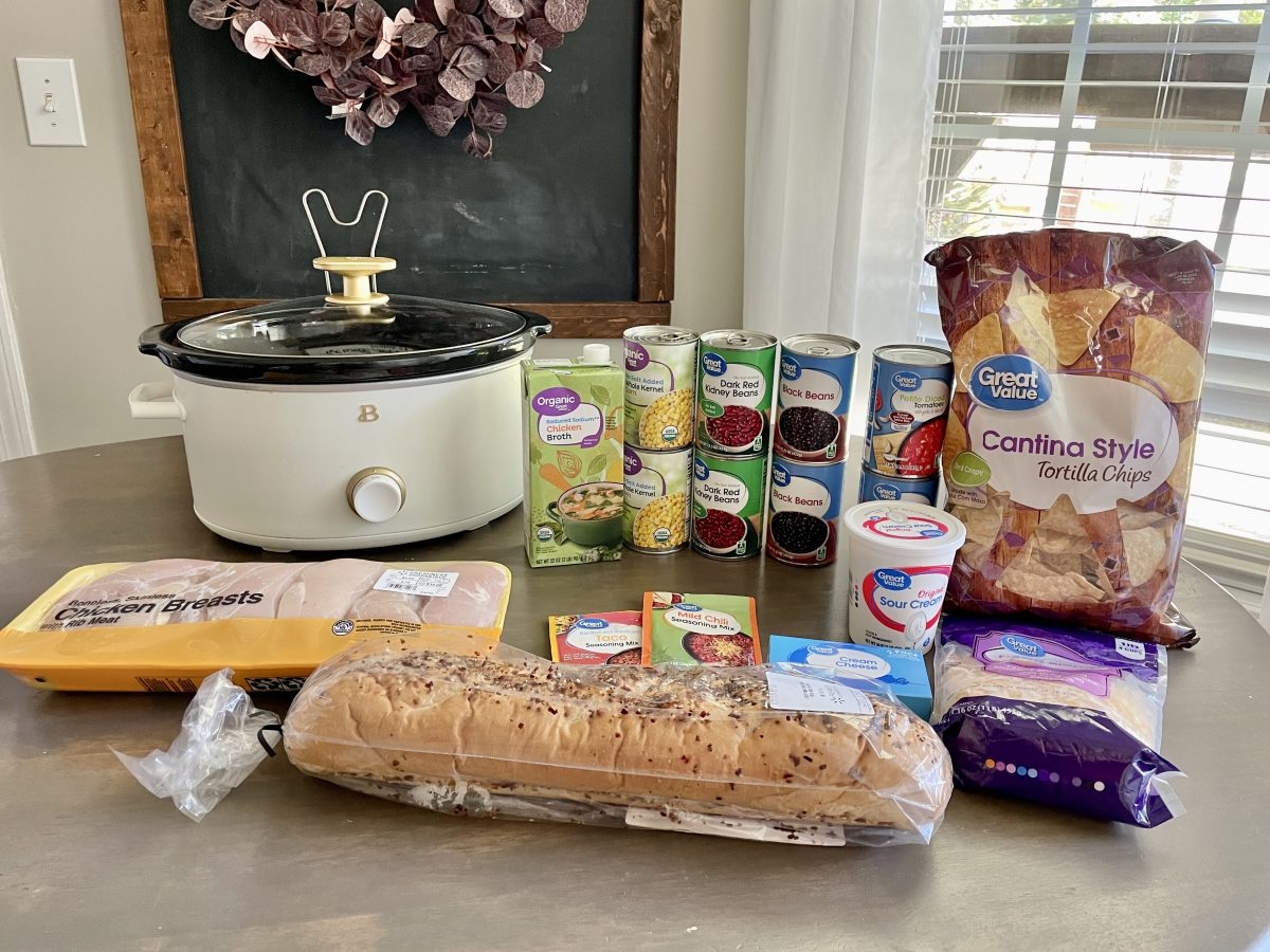 It finally feels like fall which means bring on all the chili and soups! Today I’m sharing a long-time family favorite soup – we call it White Chicken Chili.    (Post sponsored by Walmart, but recipe and all photos are mine.) Our family enjoys some variation of this soup weekly and I love knowing that I can stretch my grocery budget even further and save money without sacrificing quality or even healthier options (organic, gluten-free, low sodium) by using Walmart brand items.  I’ve always used and enjoyed many Walmart brand items, but especially now with grocery costs skyrocketing, we depend on them to help keep our groceries affordable. This is one of those dump everything in the crockpot (I even use frozen chicken if I don’t remember to thaw it and it still turns out good!), let it cook all day, and it’s done!  SOOO easy, so yummy, and good for you too!  I’ve linked all the ingredients for you to easily add to your cart. Here’s the soup recipe and some variations we love: White Chicken Chili  – 2 cans Great Value black beans – 2 cans Great Value Organic no salt added corn – 2 cans Great Value dark red kidney beans – 1-2 Great Value mild chili seasoning packets (we like ours mild but if you prefer more spice add 2 packets) – 1/2 container Great Value Organic chicken broth – 2-3 chicken breasts Cover and cook on high for 5-6 hours or low for 8-10 hours. Remove chicken, shred, and add back into the soup. And serve!  It’s that easy! All ingredients are linked here to make it easy to just add to your next grocery pickup or delivery order.