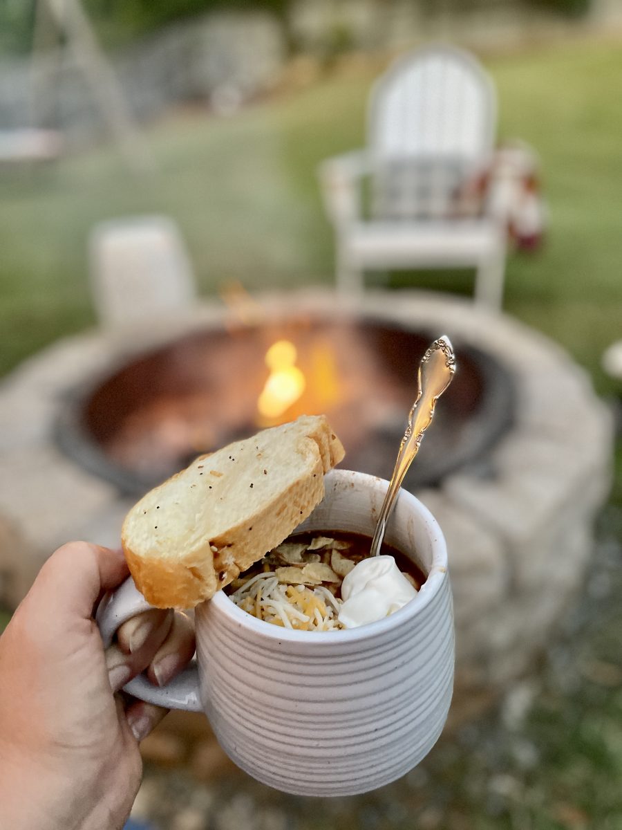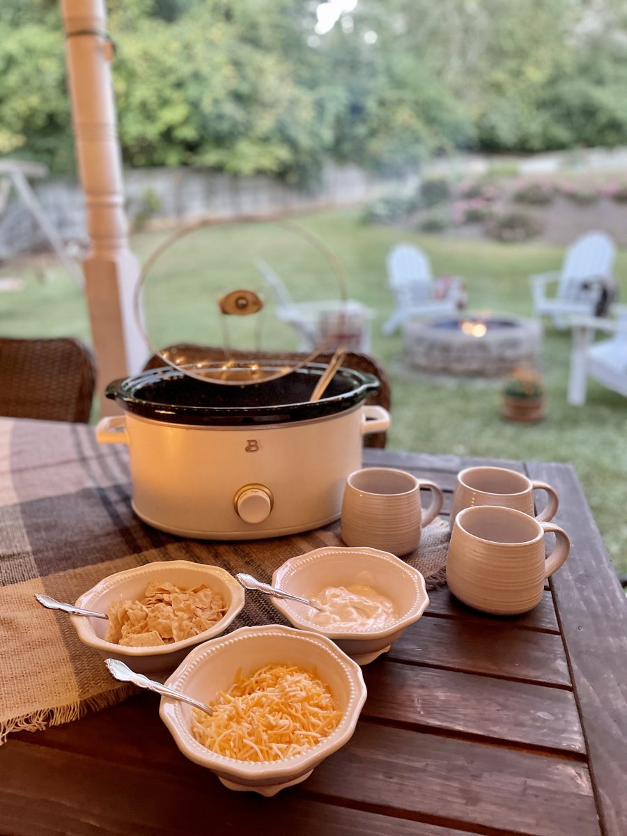 We love to top with shredded cheese, sour cream, and Cantina-style tortilla chips (have you tried the Great Value Cantina tortilla chips? They are amazing!). And serve with a side of another Walmart brand family favorite  – Everything Italian Bread baked fresh in the Walmart bakery. I slice the bread keeping it in loaf form, add butter between the slices, wrap it in foil, and heat it in the oven for 15-20 minutes.  SOOO good! Variations: add 2 cans of tomatoes and a packet of mild taco seasoning for a more taco-style soup. Or add a block of cream cheese in the last 30 minutes of cooking for a creamier soup. You can even schedule all these ingredients for grocery pickup or delivery to save time. New pickup customers can use promo code TRIPLE10 to save $10 off their first three pickup or delivery orders. $50 min. Restrictions apply.  Can’t wait for more family nights enjoying soup or chili around the bonfire this fall!    Makes sure to check out these other blog posts as part of our It’s Good to be Home series: Robyn’s Southern Nest is sharing how to add ribbon trim to furniture.