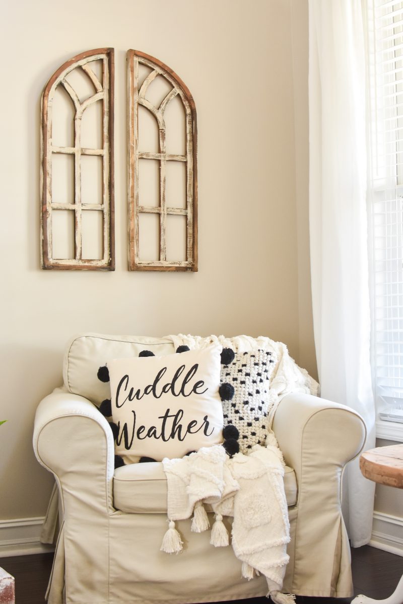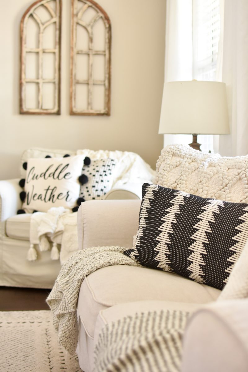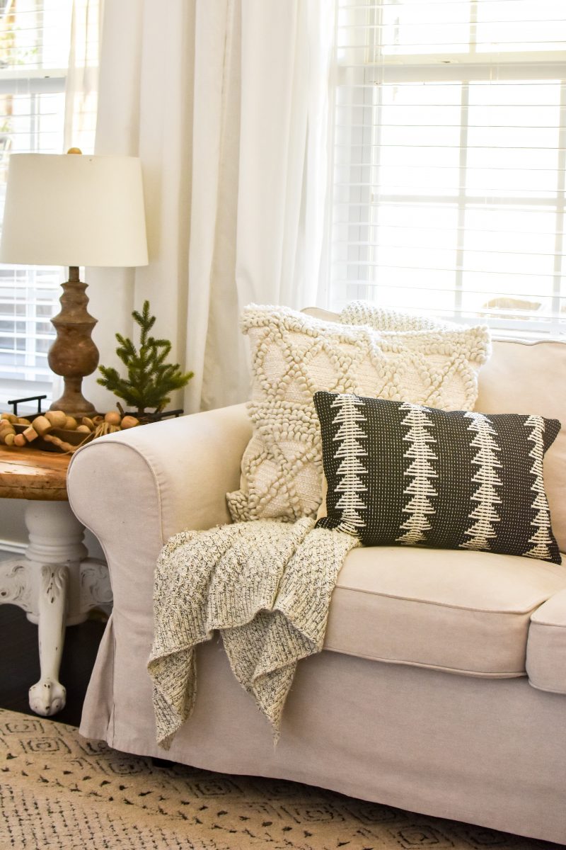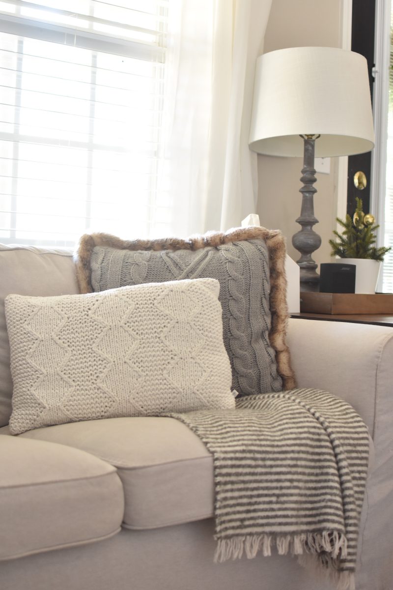 It’s always fun to add in some of my Christmas clearance finds for winter too – like these Hearth and Hand knit pillows I got 70% off at Target.