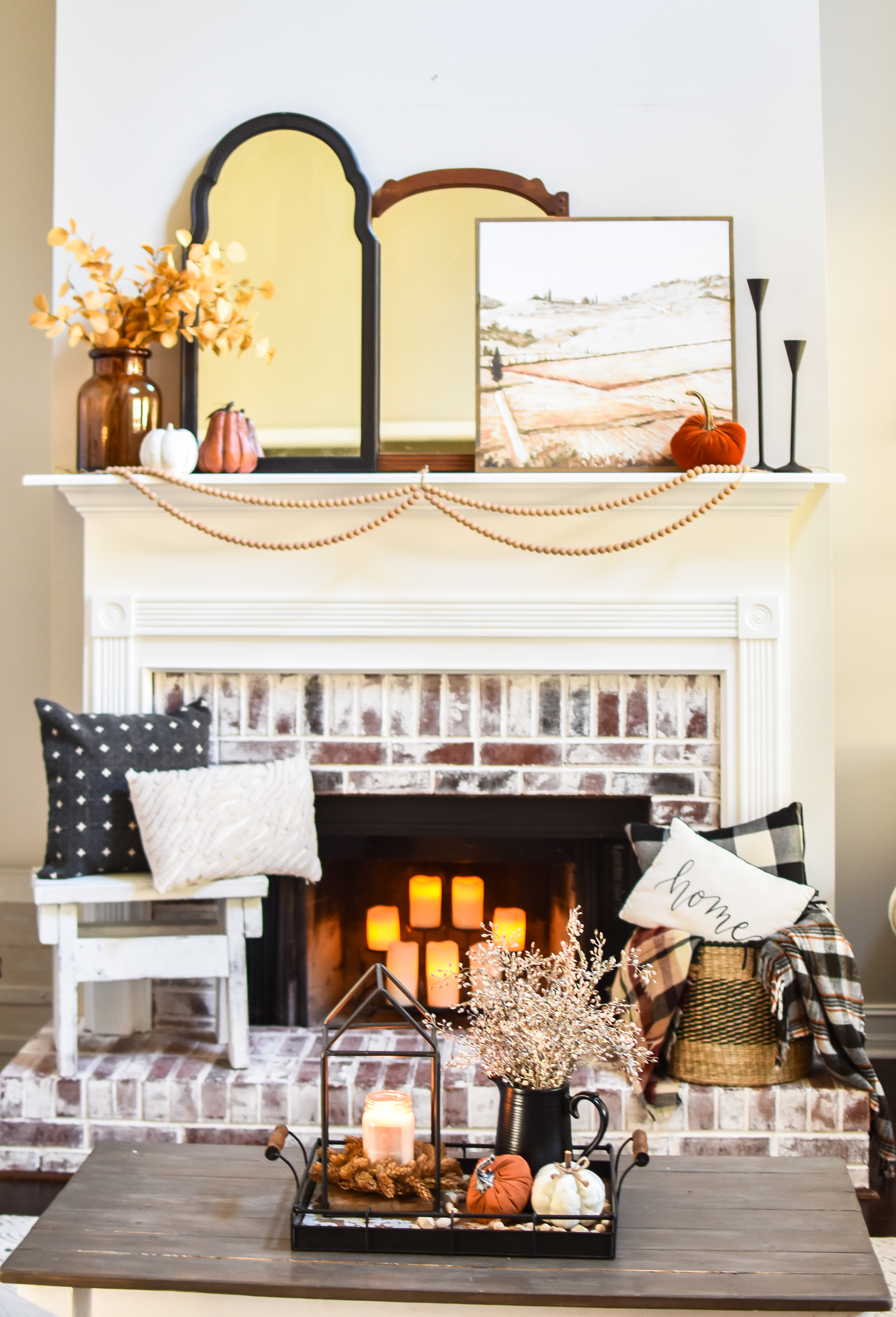 • Modern Farmhouse Layered Fall Mantel and Living Room Decor