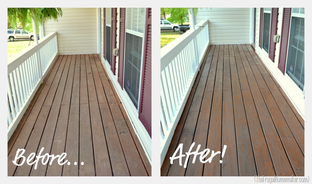 I like doing it often as it doesn’t take as long each time then. This year went super quick – a little over an hour for the railing and under and hour for the deck (not counting pressure washing beforehand) 🙂 And I broke that up and did it on 2 separate days too 🙂