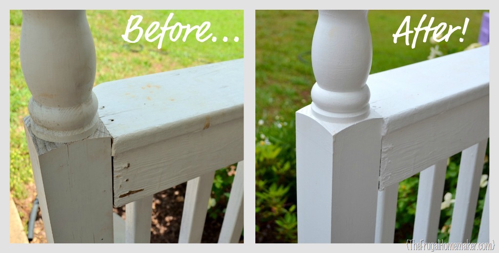 You can definitely tell a difference with the rails!  Amazing what a little white paint can do!  By the way, I just used leftover paint from past years on the rails – off the shelf, Behr outdoor white paint.