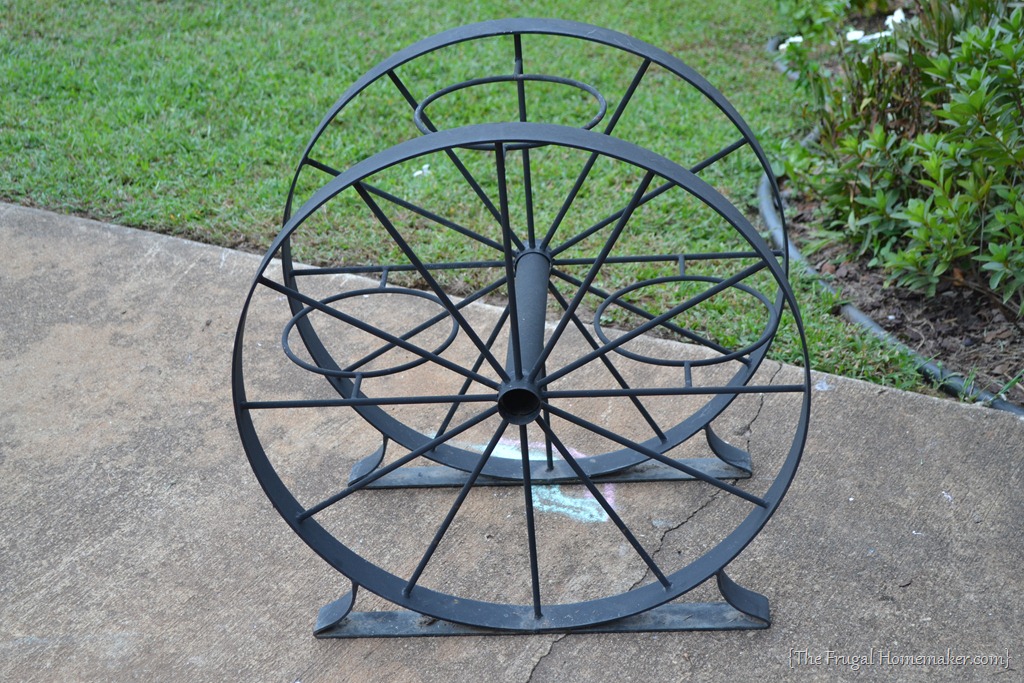 […] may remember the wagon wheel planter.  Yep, the same one I got back in the fall at a yard sale.  It was perfect for […]