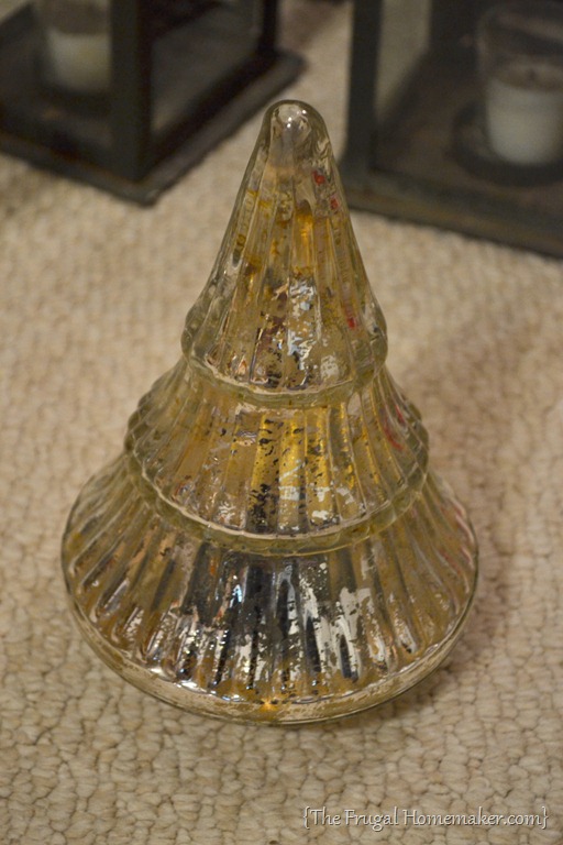 I got the mercury glass Christmas tree for $2.00.  (I can’t resist mercury glass.  Or milk glass.  Or Mason jars.  Or lanterns…)