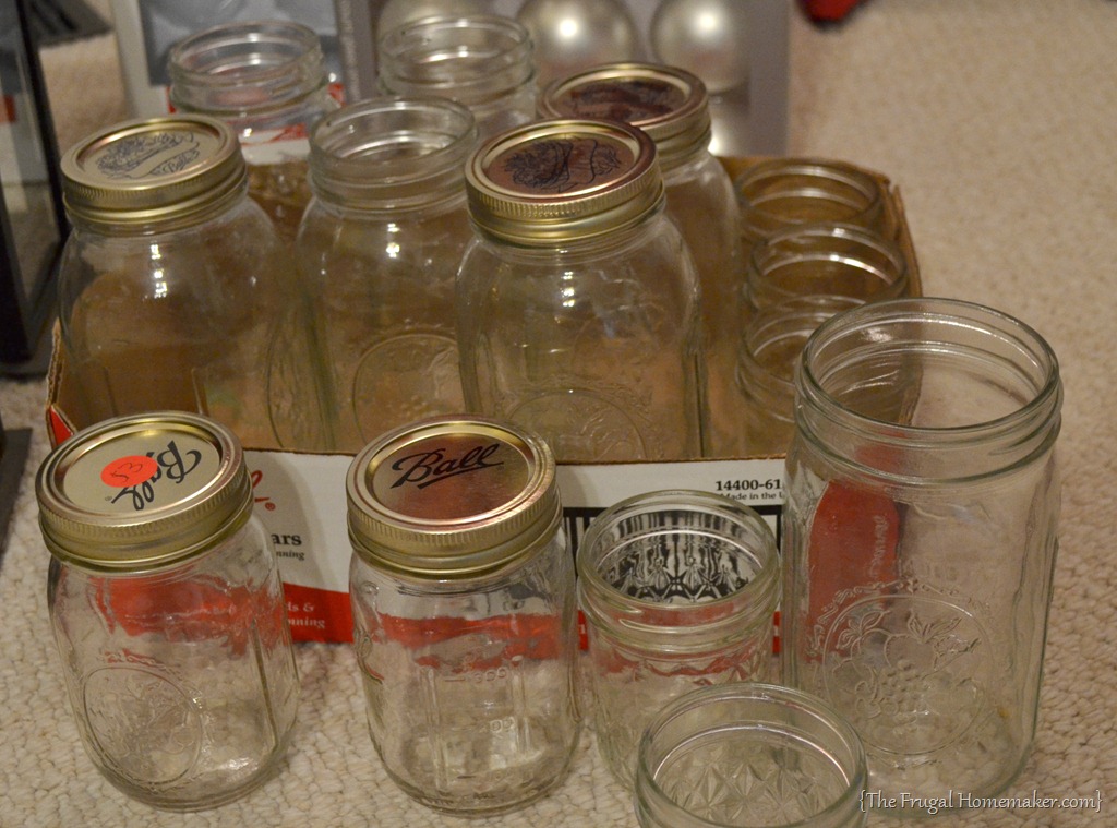 This whole box of mason jars was $3.00.  I will probably buy lids and use the smaller ones for canning some apple butter and the larger ones for decorating.