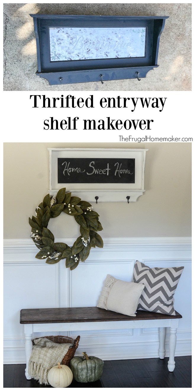 • Thrifted entryway shelf makeover